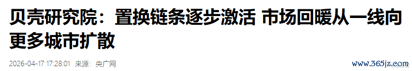 需求端,政策工具箱全面打开。多地优化限购、降低首付比例、下调房贷利率,尤其是北上广深等核心城市精准松绑,直接降低了购房门槛与资金成本。以上海为例,外环外社保年限调整后,刚需与置换需求快速入场,3月单日网签一度突破1500套,改善型房源成交占比明显提升。贝壳研究院数据显示,全国置换链条逐步激活,“卖一买一”闭环形成,带动市场活跃度持续走高。